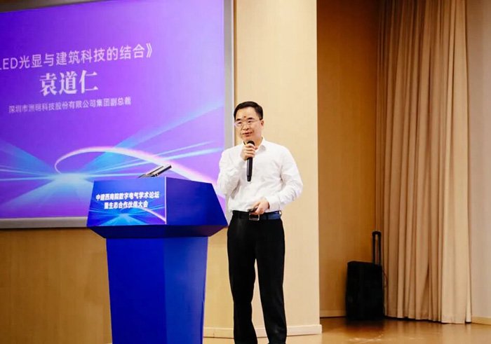 洲明集团副总裁袁道仁受邀出席活动并代表企业签约。他表示,希望通过双方合作,推动LED光显在建筑设计与应用层面的标准化和规模化,进一步加快文创与体育板块的创新落地,不断为行业注入新的活力,为智慧城市、文化创意、体育赛事等多元场景创造更大价值。