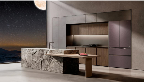 当下,品质用户对家电的需求已超越基础功能,更追求其文化内涵、舒适体验与审美共鸣。占据厨房C位的冰箱,需“内外兼修”,集品位、美学、健康与便捷于一身。基于此洞察,海信为新品打造了“海升明月·万象璀璨”的星璟面板。该设计融汇东方美学神韵,交织沧海波光与月色,以独特的明月PI曲线勾勒海上月影,呈现“明月映海,万象璀璨”的诗意意境,为现代厨居注入通透雅致的气韵。面板历经七层顶级工艺锻造,触感温润且耐磨,并精雕“回纹”、“云纹”等经典吉祥纹样,细节之处尽显匠心。