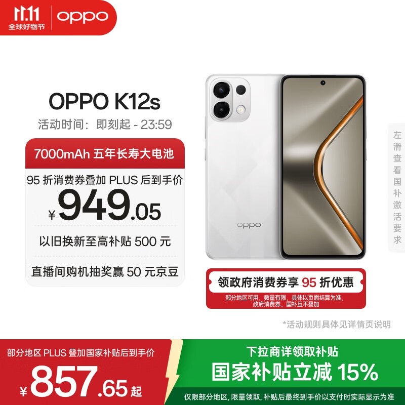 OPPO K12s 5G星芒白版低至857元
