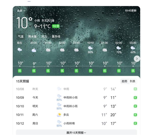 10月9日消息,据媒体报道,在连续阴雨的刺激下,今天北京南郊观象台日最高气温仅10.6℃,这个气温值成为1951年建站以来10月上旬日最高气温的最低值。