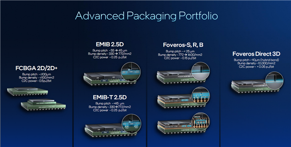 除了先进工艺,Intel还有着丰富的先进封装技术,可以分为EMIB、Foveros两大家族,各自又衍生出了不同的版本,满足不同的封装需求。