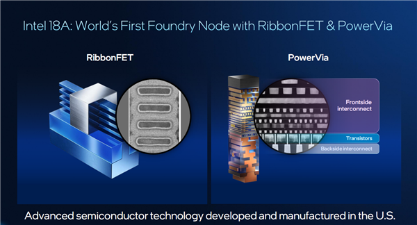 Intel 18A标志着半导体制程工艺的一次重大突破,尤其是它首次加入了两大全新革命性技术:RibbonFET全环绕晶体管、PowerVia背部供电。