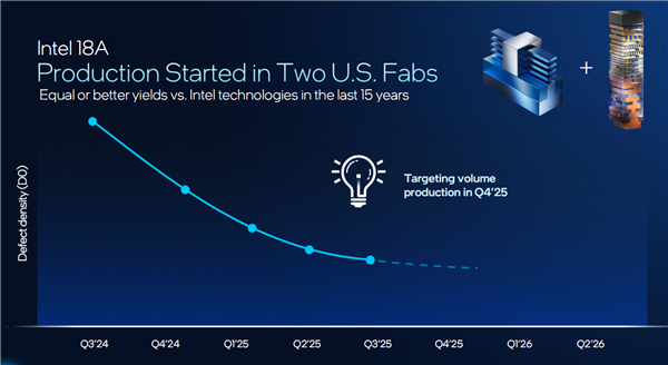 目前,18A早在2024年第三季度就已经投入试产,目前正在美国亚利桑那州、俄勒冈州两地的工厂积极推进,缺陷密度不断降低,计划量产时间是今年第四季度,正好和Panther Lake的发布计划相符合。