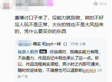尽管如此,他依然努力维持沟通,希望玩家能亲自体验游戏、觉得不合适可以退款。这种带有真诚又略显笨拙的宣发方式,最终让整件事呈现出一种复杂的矛盾感——既有创作者想被理解的迫切,也有在舆论压力下的无力与误解。