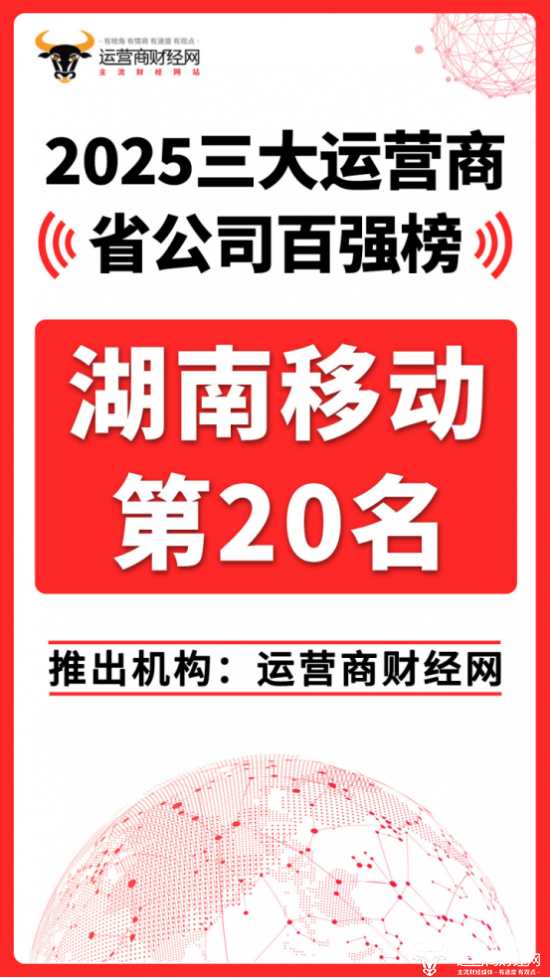 日前,运营商财经网重磅推出“2025三大运营商省公司百强榜”!湖南移动名列总榜第二十。