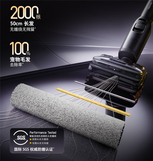 石头A30 Pro Ultra则通过国际SGS权威防缠认证,采用双重鲨齿拦截系统,141个3mm鲨齿主动截断长发,养宠家庭再也不用手动清理滚刷上的猫毛狗毛了,每次清洁后滚刷依旧干净清爽。
