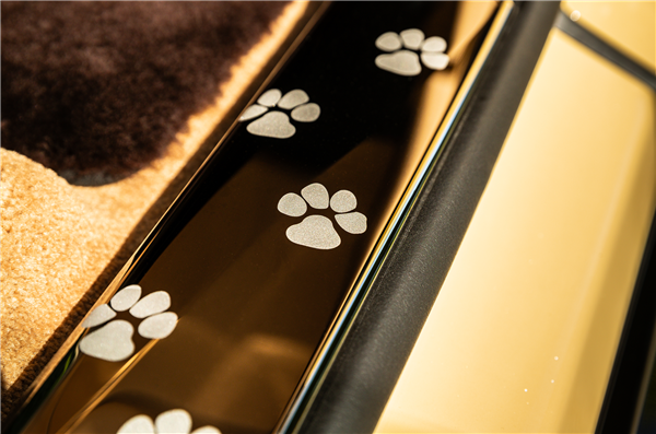 标志性的手工绘制腰线上,镶嵌着完全复刻贝利爪印的微小图案,迎宾踏板和仪表盘上也以玫瑰金雕刻或蚀刻同样的爪印,形成视觉呼应。