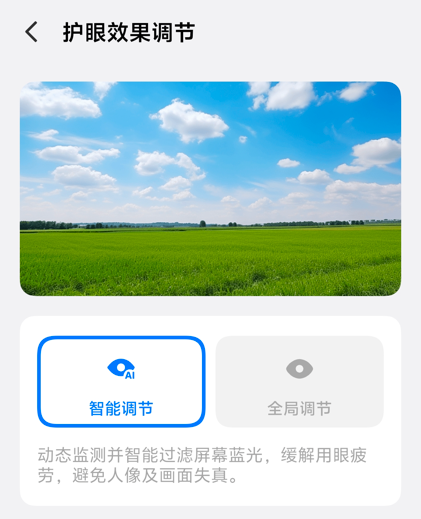 除了基本的护眼模式之外,新增了护眼效果调节、AI舒眠模式、抗疲劳亮度调节、自适应环境色温等能力,并且还支持全高频调光自主开关选项。