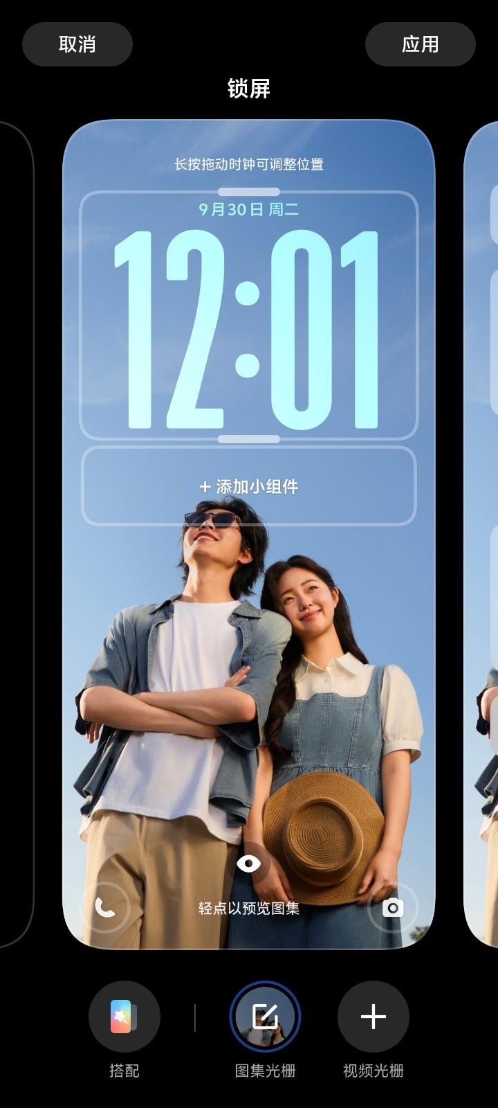 不仅如此,它还内置了多种画面切换的过渡特效,像棱柱光栅、渐隐渐显、磨砂玻璃等。用户能够依据不同的内容类型,随心选择合适的过渡效果,从而进一步增强视觉的节奏感与趣味性。这款主题不但支持静态照片,还支持LivePhoto与视频内容。用户可以轻松地将静态素材或者日常拍摄的影像,转化为具有互动性的创意壁纸。