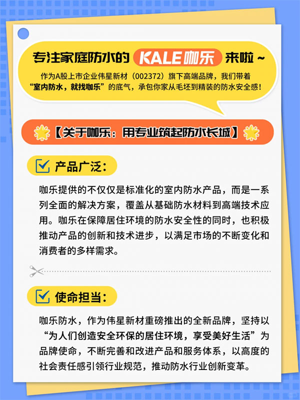 为支撑这一定位,咖乐在产品与服务两端同步发力。产品上,其聚合物防水涂料等产品具备优异的柔韧性、抗渗性与环保性;服务上,咖乐创新推出“星管家双质保”与“咖乐涂施工”两套体系,提供五年双重质保,解决用户后顾之忧。