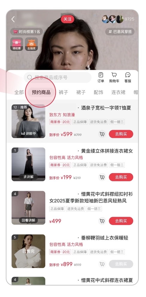 平台推荐算法也会基于用户预约的商品向更多的相似用户推荐直播间,实现开播后的直播内容精准推荐,帮助商家在开播前提前锁定流量。
