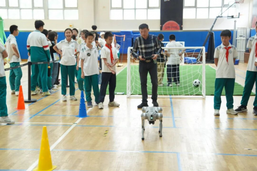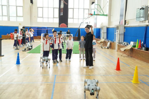 开幕式结束后,硅基公园在学校体育馆搭建了主题为“未来已来——人工智能与具身智能主题体验馆”,各类AI大模型体验项目和机器人展区引人入胜。机器狗接力赛场上,装载智能程序的机器狗在同学们的操纵下敏捷穿梭于锥桶障碍间,精准完成接力动作,引发围观学生阵阵喝彩。机器人飞花令项目则生动呈现出文理交融的魅力。机器人精准识别语音并应答诗句,偶尔出现的趣味性误差更激起全场善意的欢笑。“原来机器人能和我们共诵古诗!”来自景山学校远洋分校六年级学生雀跃道,“这让我真切感受到传统文化与科技的交融之美。”