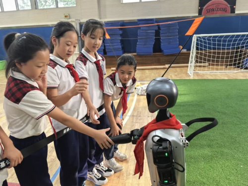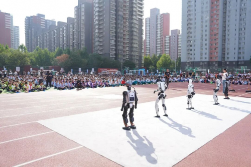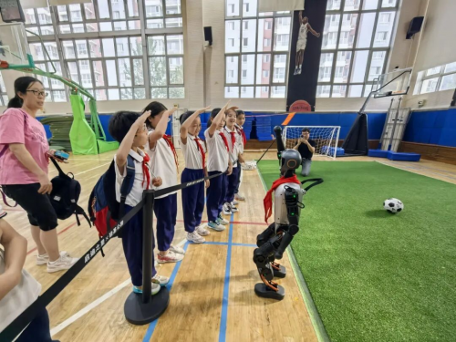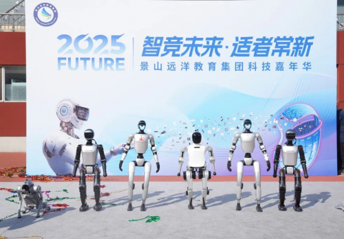 《机器人机甲秀走进景山学校远洋分校》伴随着动感音乐,三组各具特色的机器人轮番登场:松岩动力的机械臂随即跳出潮汕传统《英歌舞》的铿锵韵律;加速进化公司的机器人率先演绎现代舞《走向未来》;宇树机器人则以优雅灵动的《查尔斯顿舞》压轴登场。三段风格迥异的舞蹈精准卡点,机械之姿行云流水,引得台下掌声雷动,让学子们真切领略到科技与艺术融合的魅力。