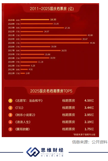 随着国庆档落幕,市场目光将转向贺岁档与春节档。谁能在接下来的档期继续领跑,仍需看内容质量、观众口碑与资本布局的协同效应。电影市场的竞争,远未结束。(思维财经出品)■