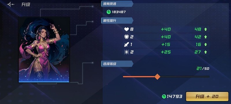 将一个随从的等级从1级提升到21级,共升20级,通过观察其四项属性的总增长值,再除以20,即可得出该随从每级的属性成长值。这样计算能更准确地反映出随从的成长潜力。