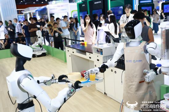 展区无人餐厅内,多个机器人正自主协作,为观众奉上地道的广州早茶;户外远程机器人跑酷秀更是让观众惊叹连连,四足机器狗“灵犀”不仅能陪聊陪玩,还能在露营、跑步等场景中贴心陪伴,成为智慧家庭中重要的一员。
