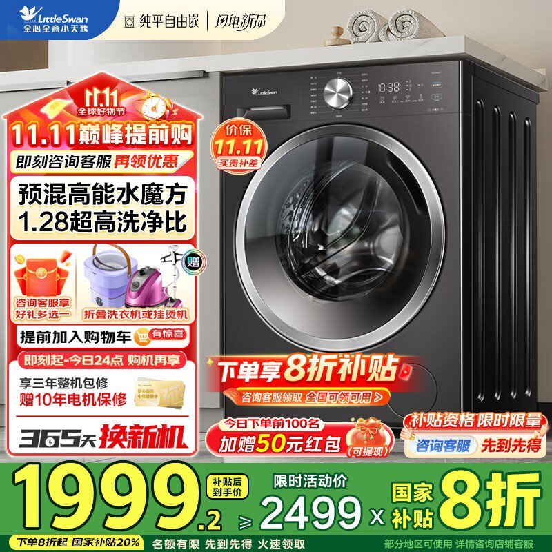小天鹅10kg滚筒洗衣机,低至1891元