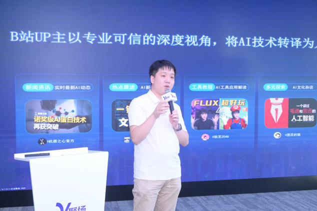 哔哩哔哩AI区负责人忍冬结合平台相关数据,分析了当前优秀AIGC创作者的特征和优质内容的传播规律,并分享了平台在激励扶持、内容治理的做法机制,强调平台“技术向善、内容体现价值观”的定位与方向。