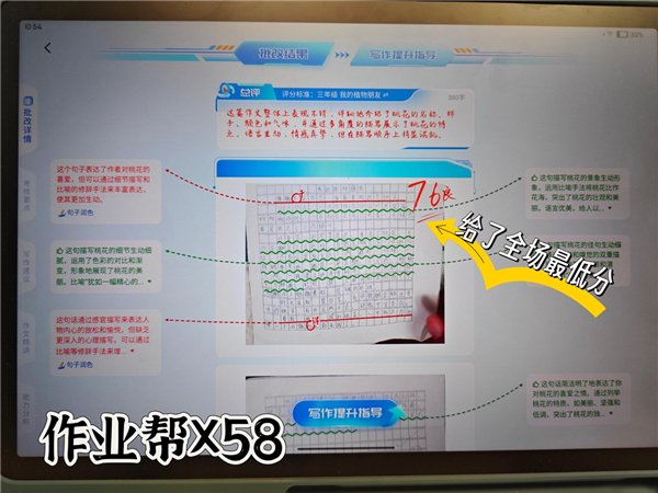 在作文批改环节,@陪玩妈妈贺小狗 对比三机作文评分与教师打分的一致性,结果显示科大讯飞评分95分与教师给分高度吻合,而学而思88分、作业帮76分存在明显偏差;;