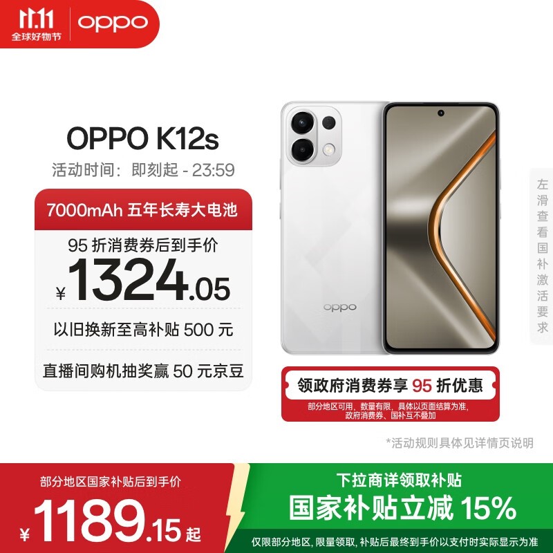 京东OPPO K12s星芒白 到手仅1189元