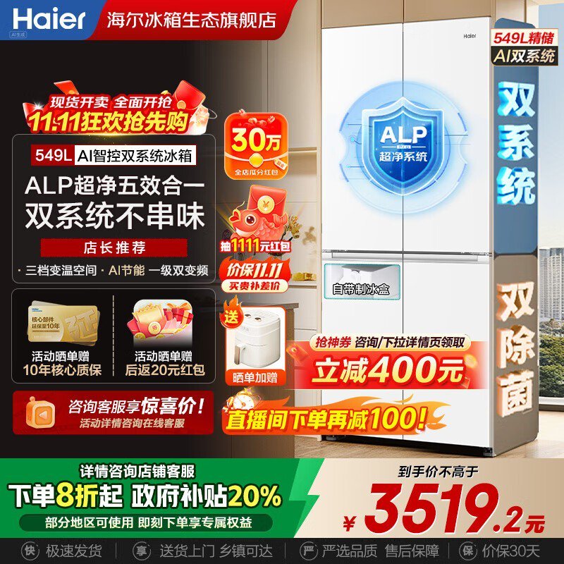 海尔549L风冷冰箱3039元