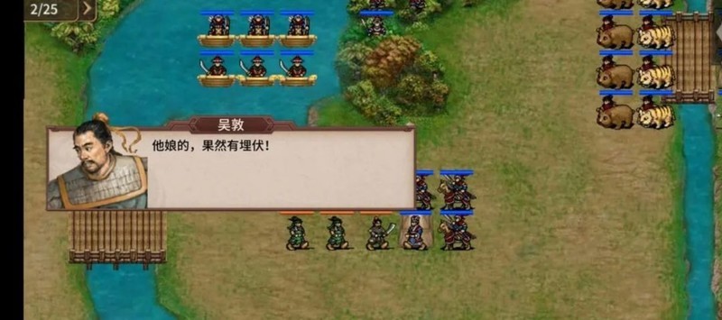 下回合左侧岸边将出现伏兵,我方需在徐晃部抢占河西前,确保至少八人抵达马超剧情中整军的位置。