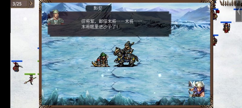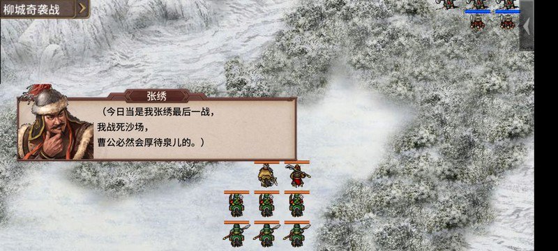 曹操开局带领部分人马从右下方出发,第四回合徐晃等四人会在汪昭后方的水池处出现,注意控制节奏,触发单挑时不要攻击过快。