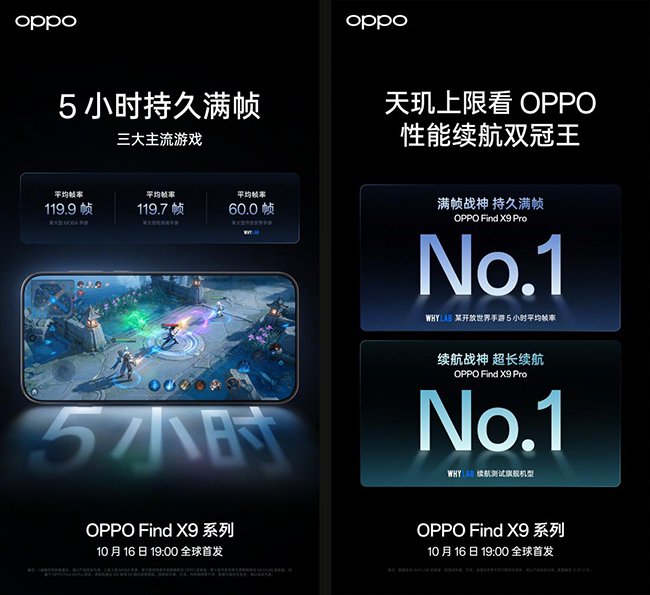2025 年 10 月 12 日,中国,深圳 —— OPPO 正式宣布「旅拍神器」Find X9 系列引领旗舰进入 7000 + mAh 超大电池时代。配合天玑 9500 旗舰芯,在新一代芯片级性能调度潮汐引擎的加持下, Find X9 系列更拥有顶级旗舰性能,让游戏不止满帧,更能实现长达 5 小时持续满帧,为用户的旅拍创作与全场景使用提供最坚实的后盾,彻底告别电量与性能焦虑。