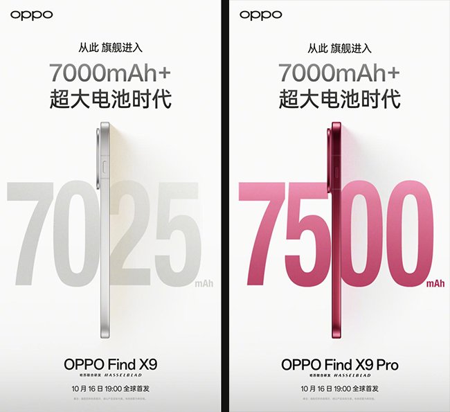 作为 OPPO 品牌三十周年巅峰之作,「旅拍神器」 Find X9 系列将于 10 月 16 日 19:00 全球首发,全系 7000+ mAh 的大容量冰川电池,以及天玑9500旗舰芯,达成性能续航双冠王!重构旗舰续航与性能标准。更以哈苏全焦段超清影像系统,打造哈苏画质王极致旅拍体验,通过哈苏真 2 亿超清镜头捕捉纤毫细节,4K 超清实况照片让瞬间动态细节更清晰,8K 超清照片解析力突破视觉边界,配合全球首发 1nit 明眸护眼屏,完美呈现哈苏色彩美学与细腻画质,同时兼顾全天候低光环境下的舒适视界体验。更多 Find X9 系列产品信息,敬请持续关注 OPPO 。