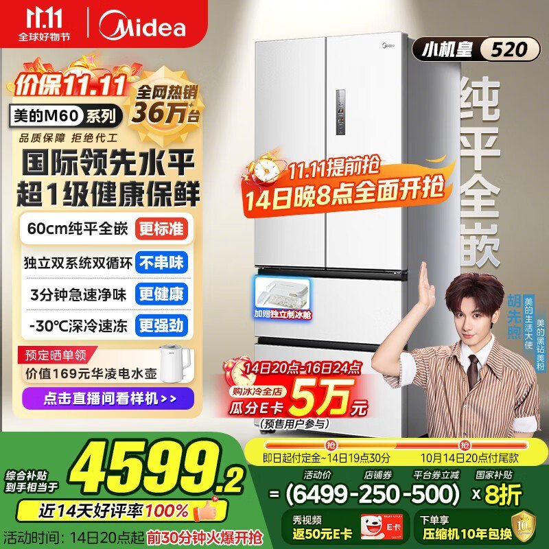 美的520冰箱预售,优惠后4138元