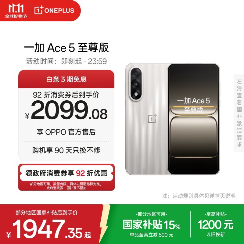 一加Ace 5至尊版1784元起