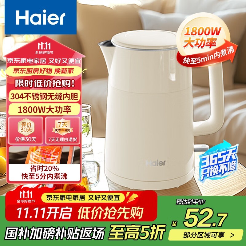 海尔电热水壶52.7元抢