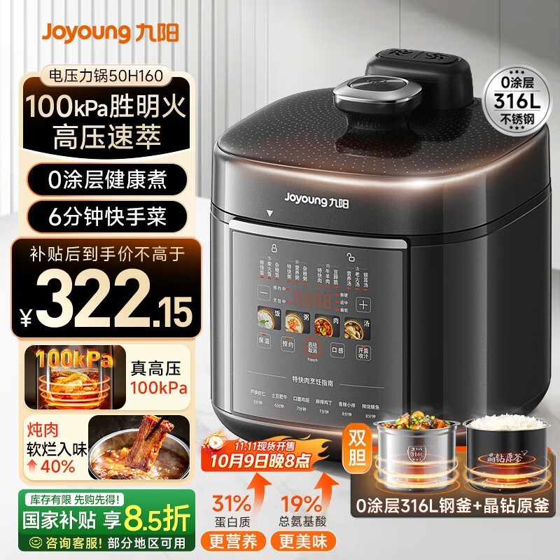 九阳5升电压力锅Y - 50H160直降特惠