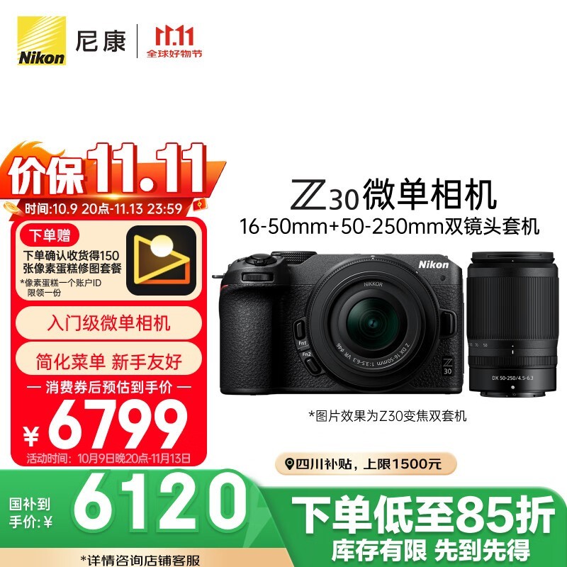 尼康Z30双头套机直降,低至6660元