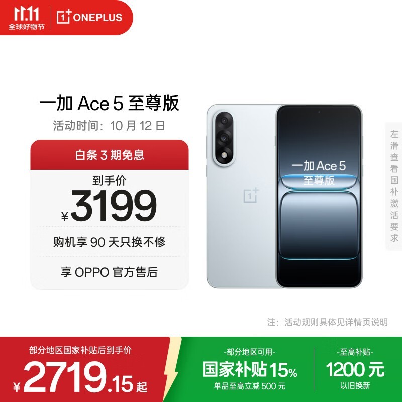 一加Ace 5至尊版2719元抢
