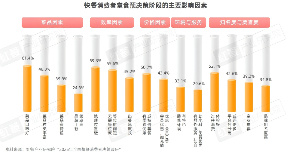 红餐产业研究院“2025年全国快餐消费者决策调研”显示,82.1%的消费者在前往门店堂食之前,会通过一些平台或者渠道搜索更充分的品牌信息,以做出更优的决策。