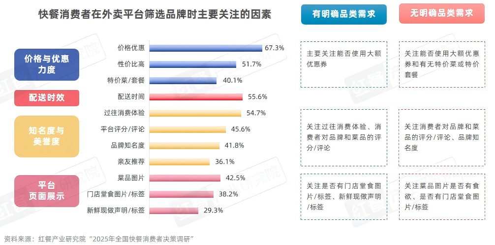外卖消费者重点关注价格与配送时效