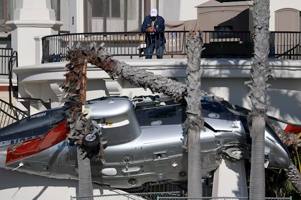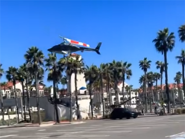 事发地点是加州南部亨廷顿比奇市热门景区亨廷顿海滩,有现场目击者拍摄的视频显示,涉事直升机在空中失去控制,在海滩上空打转后猛然坠落,最终卡在海滩边一处台阶与几棵棕榈树之间,坠落位置距离一条公路不远。