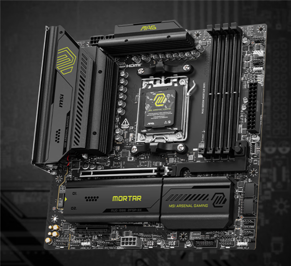 一直以来,迫击炮都是微星产品线中的性价比神板,B850M MORTAR WIFI 供电规模高达12+1+1相,并且配备了钛金电感和60A电流的DrMOS,拥有1个全尺寸的PCIe 5.0x16插槽以及2个支持PCIe 5.0技术的M.2 和1个PCIe 4.0 M.2 SSD接口,网络方面则是5Gbps有线网卡 + Wi-Fi 7无线网卡组合。