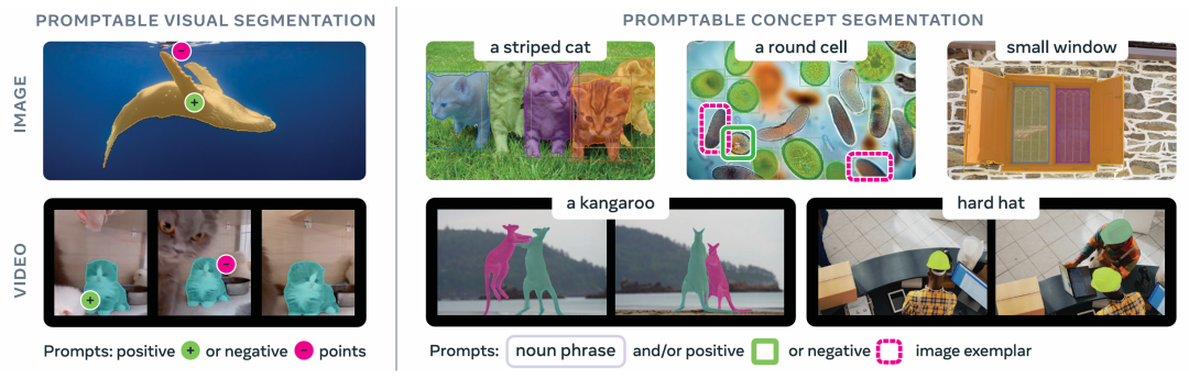 它被定义为一个更高级的任务:可提示概念分割(Promptable Concept Segmentation, PCS)。