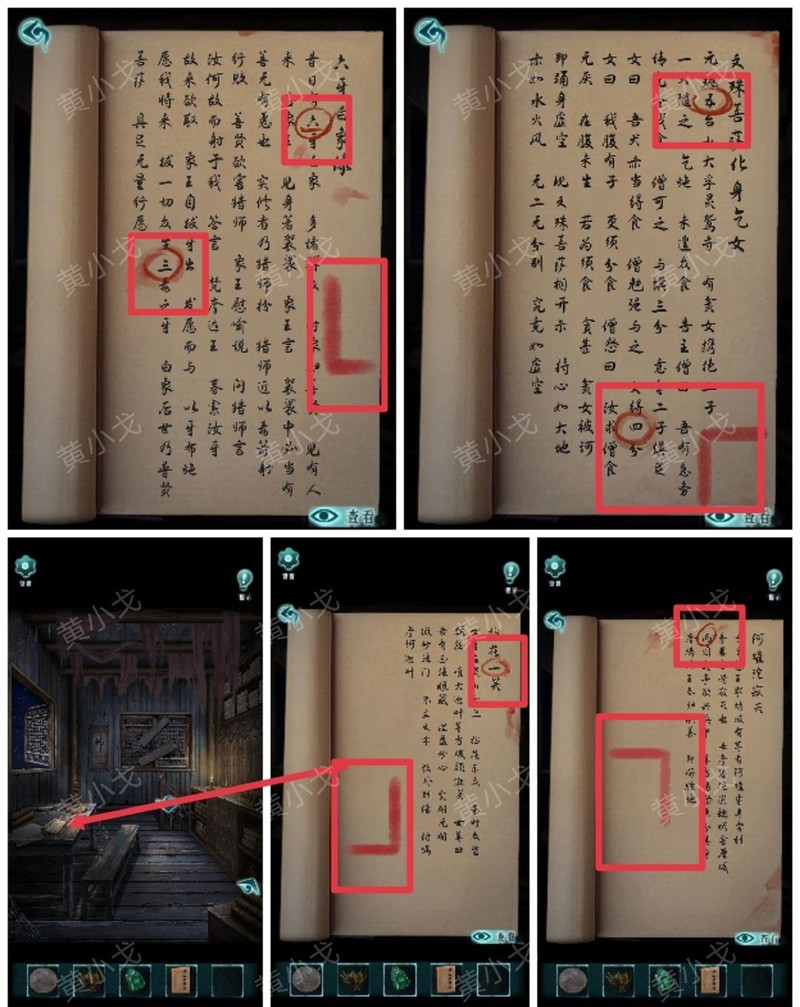点击查看桌上书籍,留意红圈数字与笔画细节。