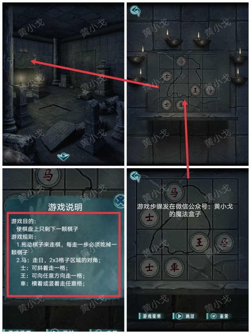 点击墙上棋盘,查看游戏说明,完成小游戏。