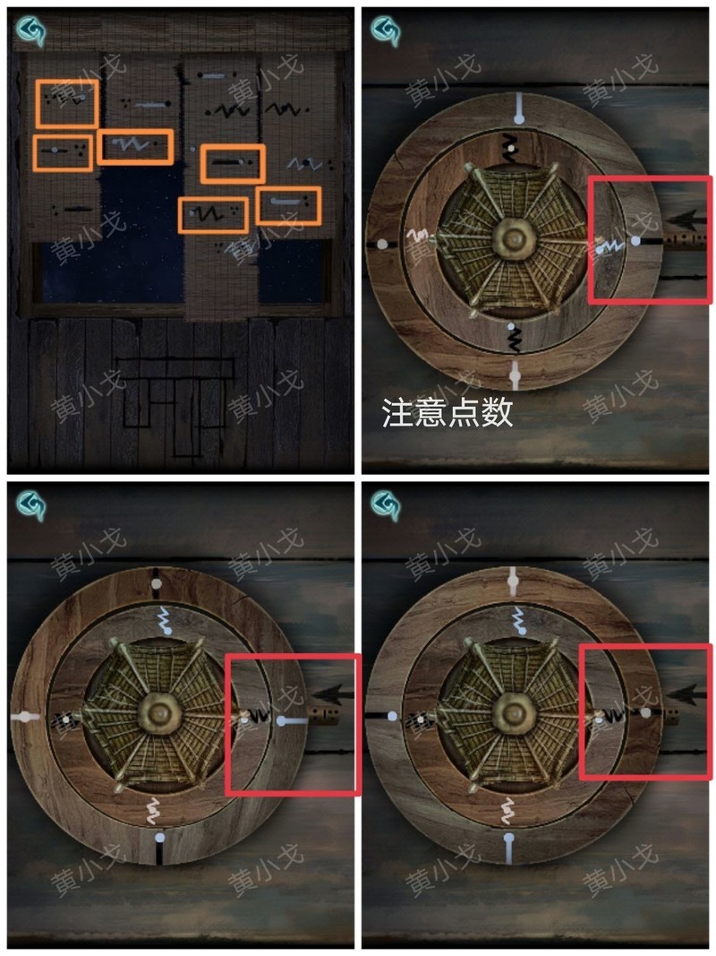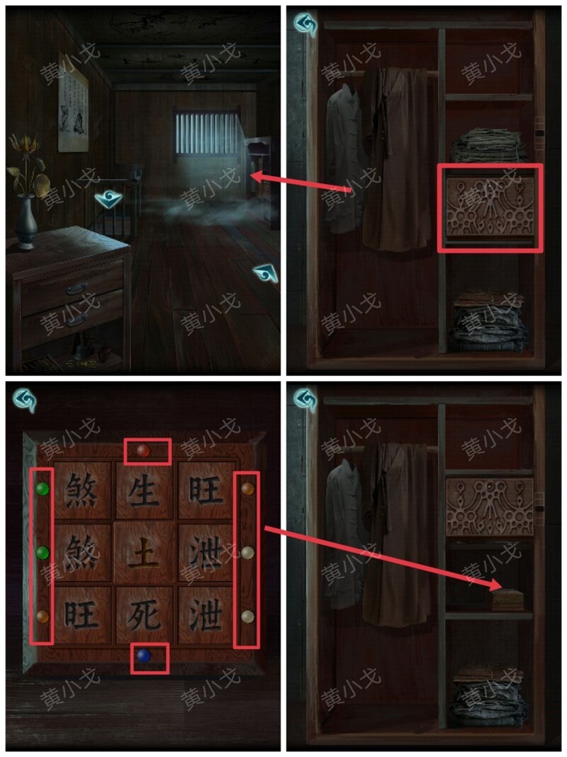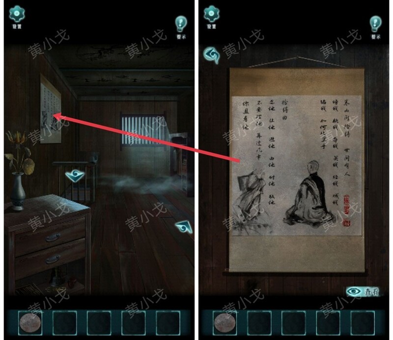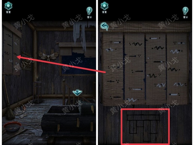 点击竹帘旁的机关,依照墙上涂鸦调整木块位置(2132,机关需倒置)。