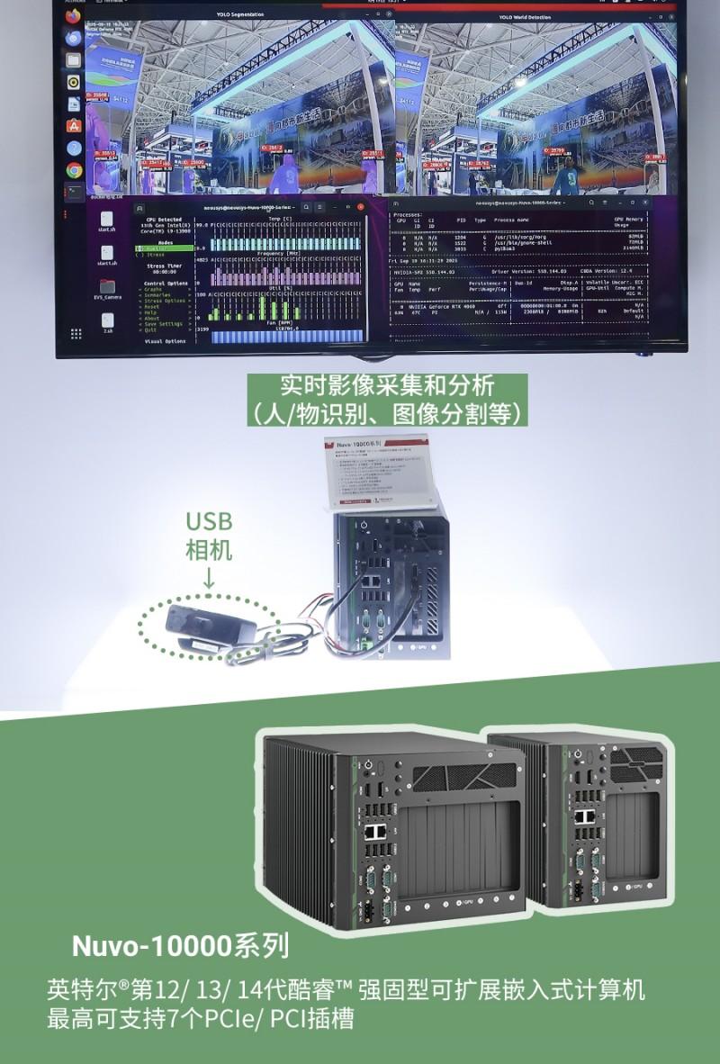 展台上,Nuvo-10000系列连接了高清USB相机,不仅可以采集现场画面,同时还可以进行实时的人物识别和分割。