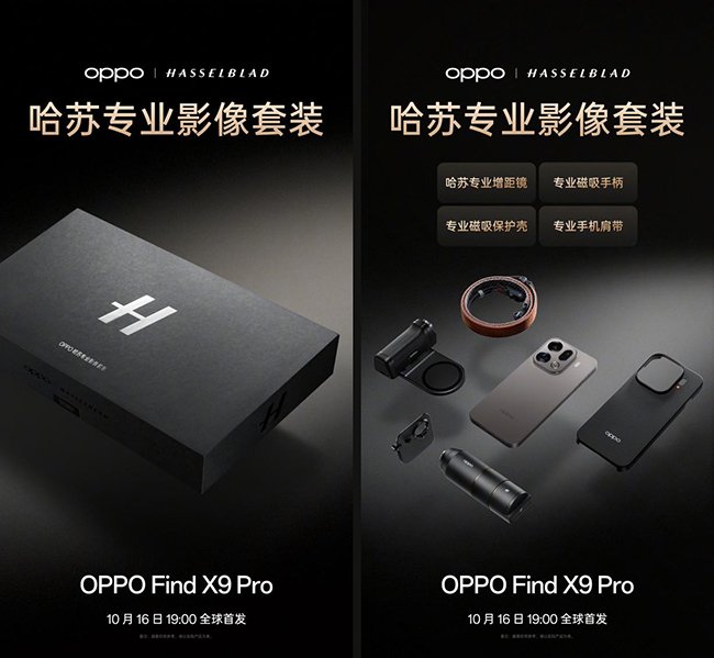 2025 年 10 月 13 日,中国,深圳 —— OPPO 正式官宣,Find X9 系列将全球首发哈苏专业影像套装,打造用户口袋中的完全体哈苏。其拥有OPPO哈苏专业增距镜等多个组件,配合哈苏 2 亿超清长焦镜头,即使远至 40X 超高倍率变焦,依然光学品质无损超清,打造新一代最具哈苏味儿的「演唱会神器」,彻底突破演唱会拍摄的距离与稳定性壁垒,从此追星不用背相机。