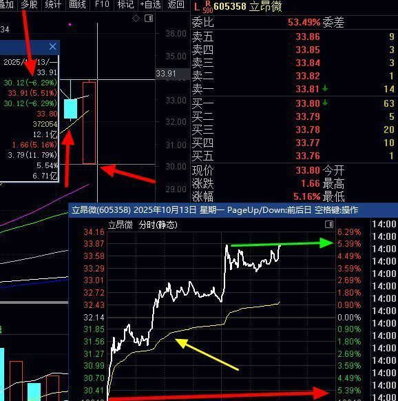上面截图的 立昂微,上周五没有开盘之前说看中的,尾盘也说看中它,等次日今天开盘再2跌低吸潜伏的,可以看到洗盘战法坚持做必然大赢小损,假设1跌尾盘入今天随便得5%左右,因为分时黄色线没有跌破《上面截图黄色箭头指的那条换黄线就是分时黄色线》也是多空分界线,反正短线涨了不能涨停都是落袋为安点记住即可。假设今天开盘-6%入的,收盘浮盈11%,所以洗盘战法自从国庆后连续选的5只,点评的5只,有4只都100%涨了,最高的涨幅8.8%,还有2个5%+,还有个3%+,洗盘的那只不过-4%,可见洗盘战法也是波动小,所以坚持易大赢小损。。。国庆后指数涨1天,跌2天,所以个股普遍涨的不多,所以这里后面优化,选的洗盘战法尽量能涨停或是连续涨停的,历经周末日夜总结发现是有的,所以耐心等机会出现。