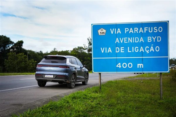 与此同时,经过巴伊亚州议会表决,比亚迪巴西工厂正门前的道路已正式更名为“比亚迪路”。其前身是纪念燃油车先驱的 “亨利·福特路”,经议会表决更名,象征着汽车产业向新能源时代的迭代。