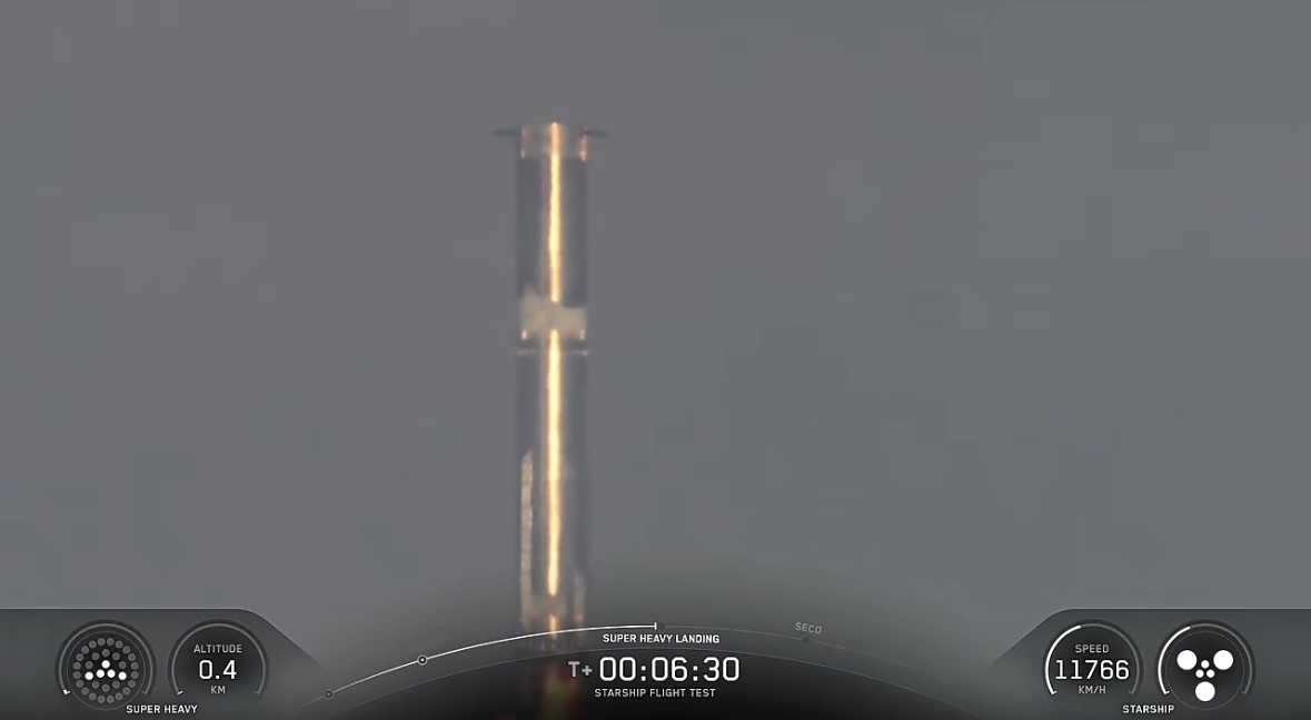 飞行的核心看点为超重助推器首秀悬停技能。本次SpaceX采用的助推器曾经参与过星舰的第八次试飞。所谓悬停,指的是该助推器将通过三阶段点火模式测试新型着陆技术。也就是先从13台引擎的状态减速,过渡到5台引擎的状态进行姿态调整,再切换至3台引擎实现海面上方短暂悬停,最终关机溅落在墨西哥湾。