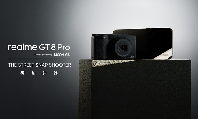 真我realme副总裁、中国区总裁徐起表示:“与理光GR达成影像战略合作,标志着智能手机在影像领域更进一步。我们致力于为用户打造一款体现自由、创造力和真实性的产品。真我GT8 Pro不仅融合了理光GR的标志性摄影风格与体验,还为数字时代的拍照和分享体验树立了新标准。“