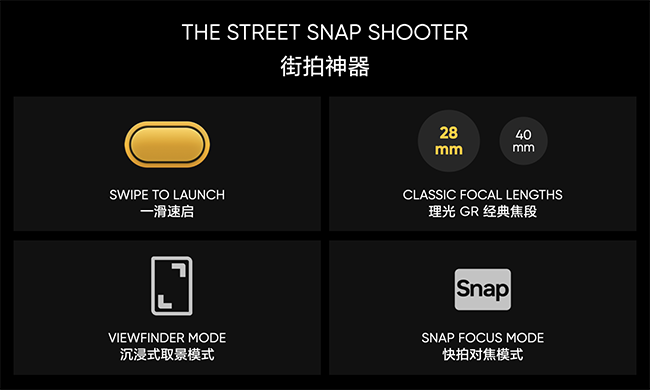 真我GT8 Pro还深度复刻理光GR的28mm与40mm两大黄金焦段(全画幅等效焦距),可在人文广角与叙事标准之间一键切换。28mm用于捕捉细节丰富的街头故事,40mm拉近距离拍摄情感流露的瞬间。沉浸式取景器模式,则是隐藏所有额外设置,排除一切干扰,将世界变为眼前的画框。